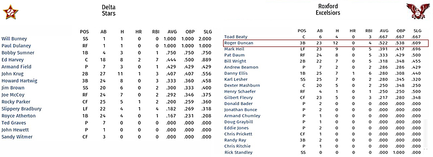 Toad Beaty, the Roxford catcher, contributed a run-scoring single in