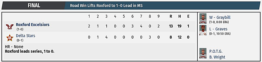 Road Win Lifts Roxford to 1-0 Lead in MS