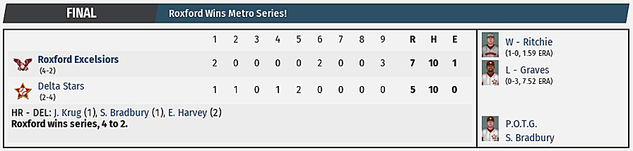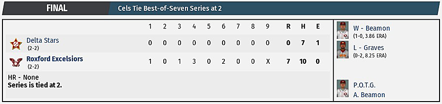 Excelsiors to victory in Game 4 of the Metro Series. Beamon held the