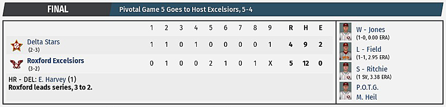 Delta Stars, 5-4, in Game 5 of the Metro Series today. Heil went 3-4