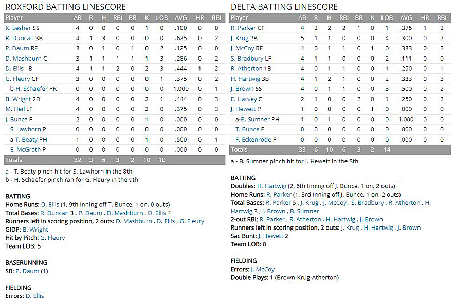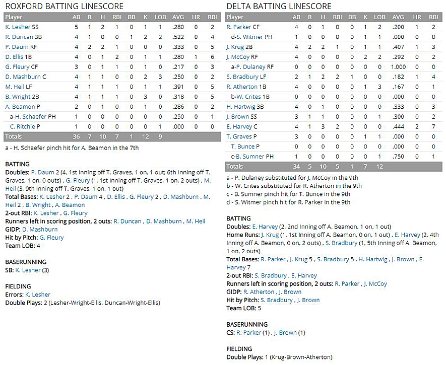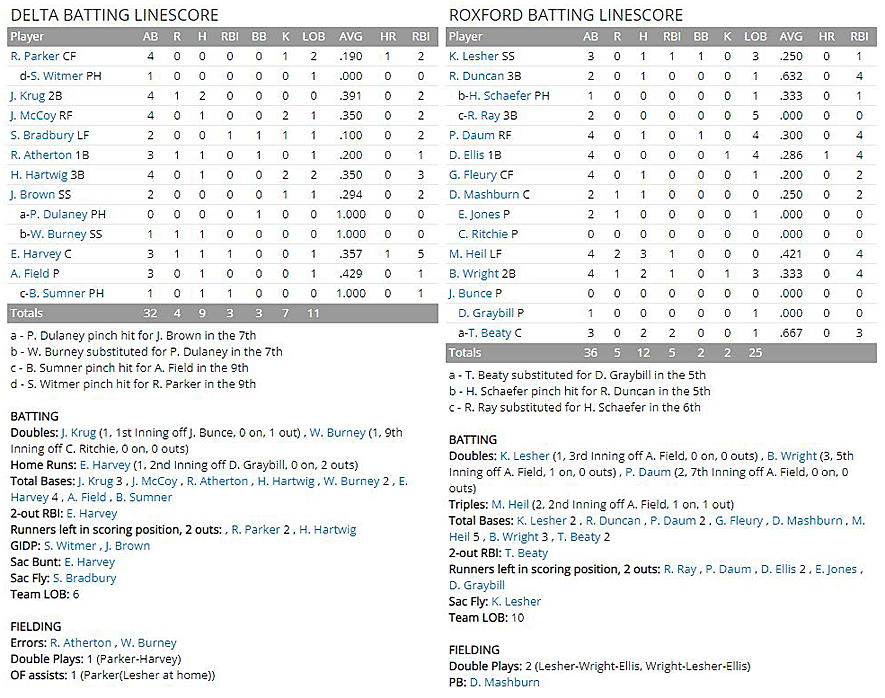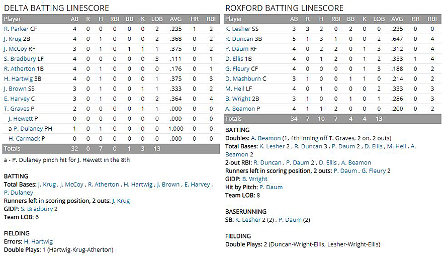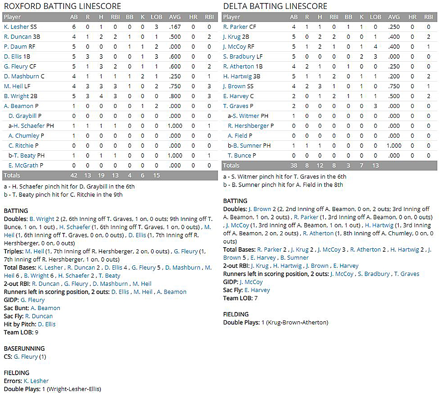Toad Beaty, the Roxford catcher, contributed a run-scoring single in