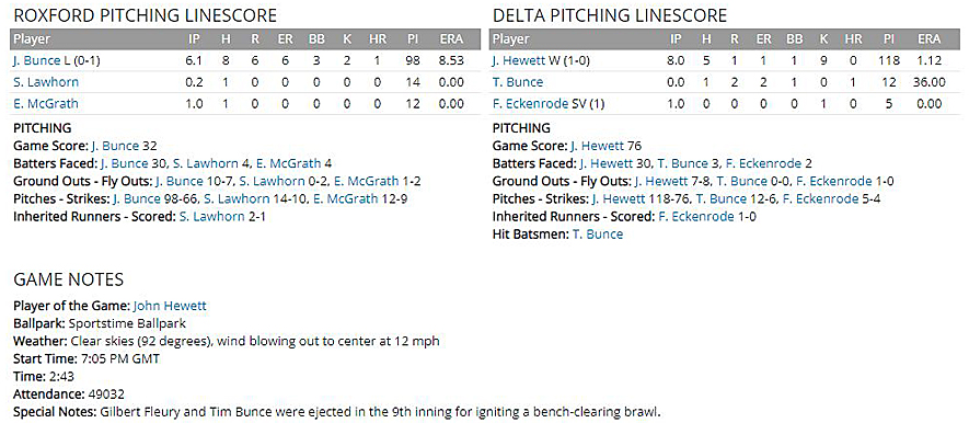 as Delta won the contest, 6-3, at Sportstime Ballpark. Hewett threw 8.0