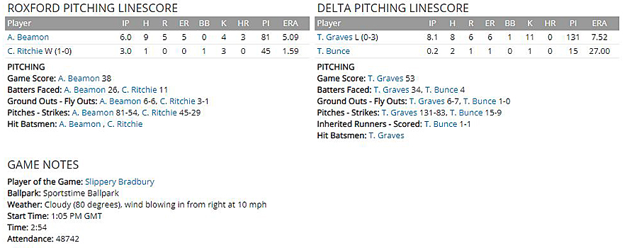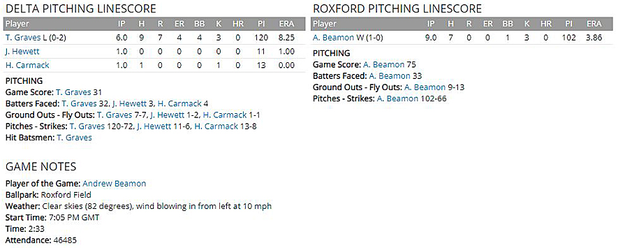 Beamon pitched a complete game for Roxford. The 34-year-old