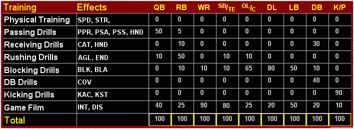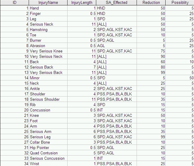 retirement tool to handle all retirements. Player Skill Attribute Ranges I only seek to control the skill ranges on skill players. The other positions are handled by the CPU. This is done through the main data file by editing the skill attribute ratings ranges. This way rookies are given these ratings when they are created by the cpu. But, I haven't adjusted all of the skill player's ranges, just the following (all other skill ranges remain at the default levels)... QB