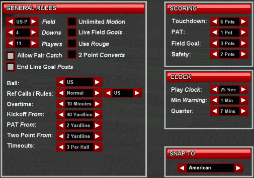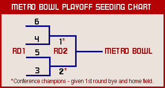 Stadiums All teams play in fictional stadiums. I've chosen to use the Merenge Double Deck Stadium model (designed by local8h) as my base for all MFL teams. Then, I've named and customized each to match the home field atmosphere of the team that plays there. Also, I've created sound packages for each stadium. I switch these out manually depending on which home stadium is hosting the game. That way each team has it's own unique atmosphere, (from the bell toll at Invasion Field, to the cow bells at Forson Field, to the streaking touchdown fireworks at Comets Field, to the random air horns that dot the atmosphere along with the 'We Will Rock You' chant that sounds off at Bulldogs Stadium, to the 'War Chant' at Warrior Stadium, to the boisterous echo that saturates the air at the indoor Metropolitan Stadium, etc., etc.) Really enhances the home field experience, makes the games even more fun to watch and immersive. Running A Team I consider myself the league administrator and do not manage any of the teams on the field. The computer handles all of this. I also function as the league's national audience so I watch quite a few regular season and all postseason games. Two Conferences With No Divisions There are 12 teams per conference with no divisions. The teams that finish the regular season in first place are crowned the conference champions. This way the season is relevant instead of being just a jockie match for post season position. The conference champions get a first round bye and home field advantage in the second round of the playoffs. 11 Game Schedule Teams play a round robin 11 game schedule where each team in the conference plays the other once per season. Teams only play games within their conference during the regular season. Tie Breakers End of season tie breakers are determined by head-to-head record first, then points scored, then coin toss. Metro Bowl Playoffs The three top teams from the East Conference and the three top teams from the West Conference (6 teams) make the postseason playoffs. The conference champions get a first round bye and home field advantage in the second round. The other four teams play in Round 1 and are seeded based on win-loss record, irregardless of the conference that they come from. The winners of the first round advance to the second round where they meet the conference champions. The two survivors play for all the marbles in the championship game which is called the Metro Bowl. (This championship game is always played at a neutral stadium called the Metro Bowl and is located in Central City).